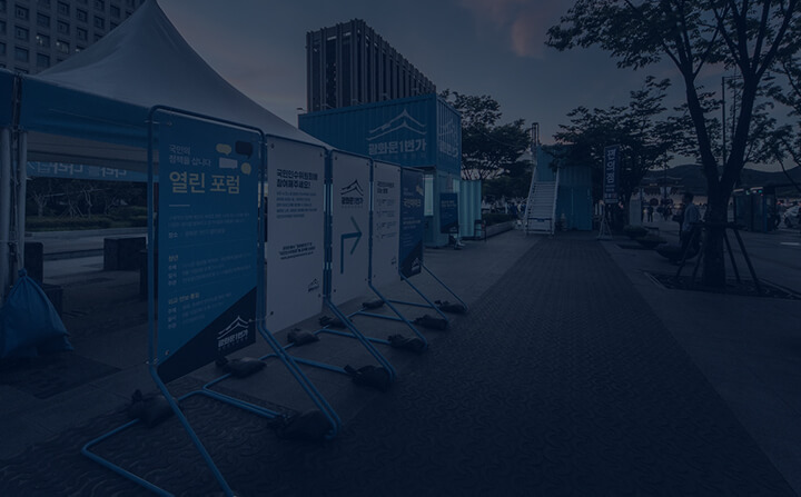 | 7.12(수) 16:00 | 광화문1번가 제안접수마감 5월 25일 국민과 함께 문을 연 <광화문1번가>가 50일 간의 여정을 마치고 7월 12일(수) 문을 닫습니다. 그 동안 함께 해 주셔서 고맙습니다. |