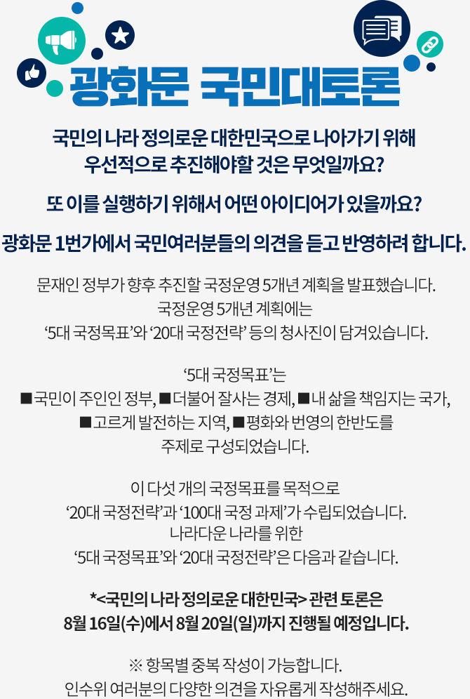 문재인 정부는 광화문 1번가로 국민정책 제안 접수를 50일 동안 받았습니다.